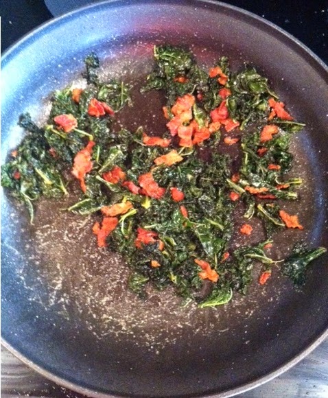 10. In a medium sized pot over medium heat, cook the bacon until crispy. Remove the bacon, reserving the grease. Add vegan butter to get approximately 2 Tbsp of fat.